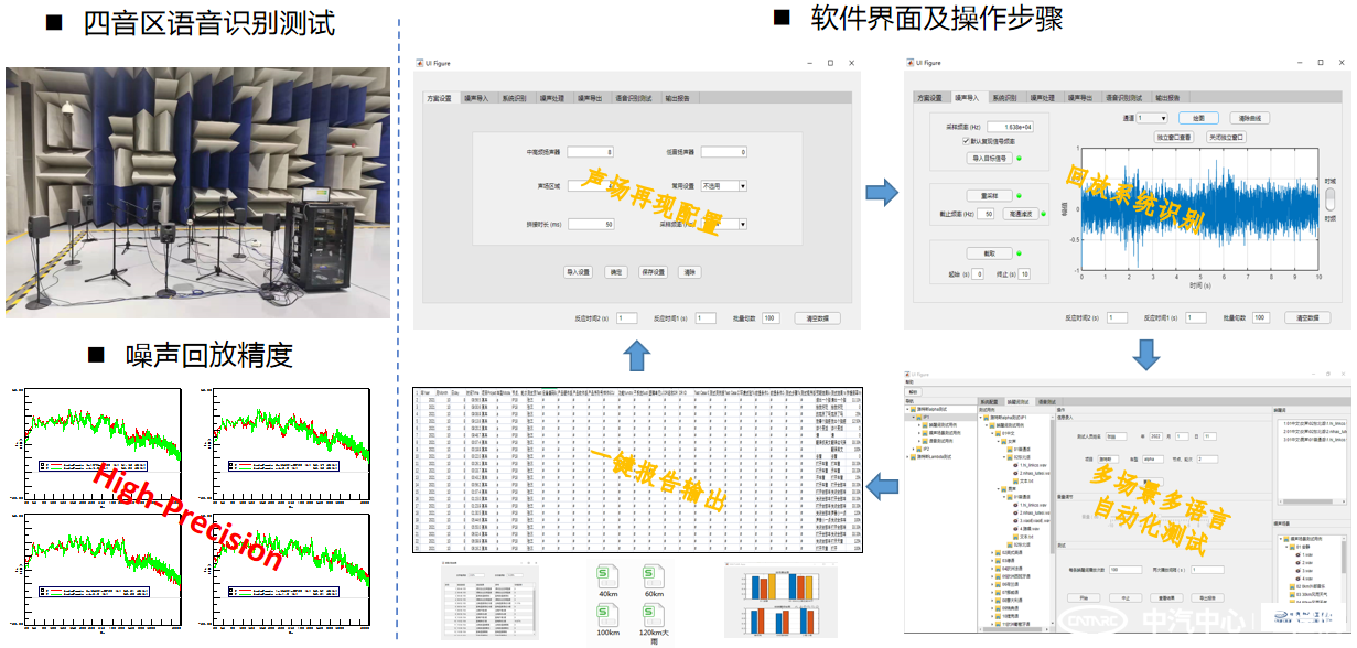 近日,中汽中心工程院電聲團隊推出了語音識別自動化測試系統。此系統基于聲學場景模擬算法,為客戶提供多噪聲場景、多方言、多語種的語音識別性能自動化測試與評估解決方案。