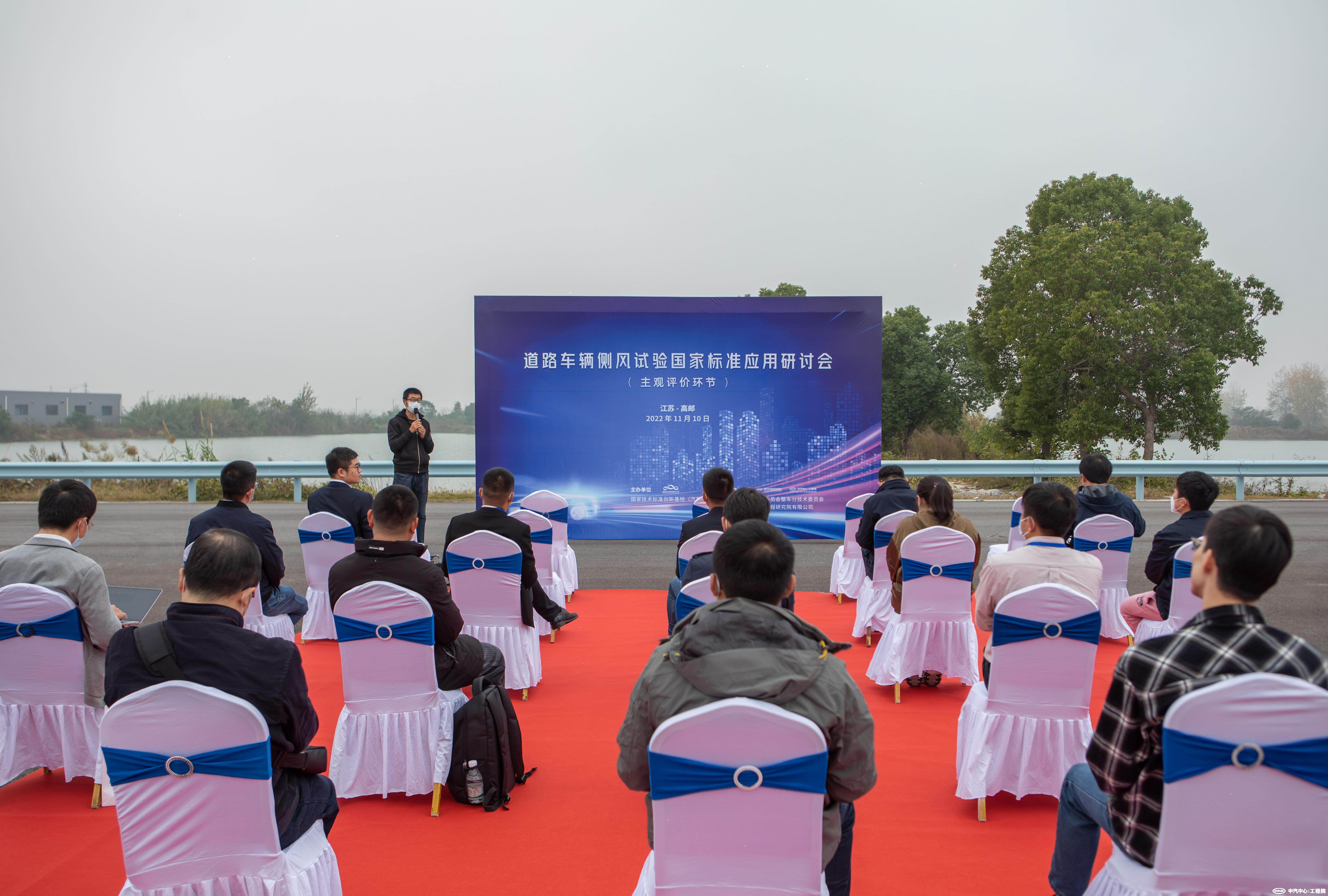 2022年11月10日,由國家技術(shù)標(biāo)準(zhǔn)創(chuàng)新基地(汽車)主辦,全國汽車標(biāo)準(zhǔn)化技術(shù)委員會(huì)整車分技術(shù)委員會(huì)(以下簡稱整車分標(biāo)委)和中汽研(天津)汽車工程研究院有限公司(以下簡稱中汽中心工程院)共同承辦的“道路車輛側(cè)風(fēng)試驗(yàn)國家標(biāo)準(zhǔn)應(yīng)用研討會(huì)”在江蘇高郵成功召開。會(huì)議圍繞最新發(fā)布的推薦性國家標(biāo)準(zhǔn)GB/T 41722-2022《道路車輛 側(cè)風(fēng)敏感性 風(fēng)機(jī)輸入開環(huán)試驗(yàn)方法》,邀請標(biāo)準(zhǔn)起草人及相關(guān)技術(shù)專家,對標(biāo)準(zhǔn)文本、試驗(yàn)場地和設(shè)備、試驗(yàn)方法和數(shù)據(jù)等內(nèi)容進(jìn)行了解讀和交流。來自國家技術(shù)標(biāo)準(zhǔn)創(chuàng)新基地(汽車)、整車分標(biāo)委秘書處、中汽中心工程院、上汽集團(tuán)、重汽集團(tuán)、泛亞汽車技術(shù)中心、蔚來汽車、吉利汽車、上汽大眾、小米汽車、上汽通用五菱、柳州五菱、中國汽車工程研究院等汽車整車企業(yè)、研究機(jī)構(gòu)的40余位汽車標(biāo)準(zhǔn)、空氣動(dòng)力學(xué)、底盤領(lǐng)域的專家和工程師嘉賓現(xiàn)場出席了本次會(huì)議。會(huì)議同時(shí)開通線上參會(huì)通道,在線參會(huì)人數(shù)達(dá)到1500人。