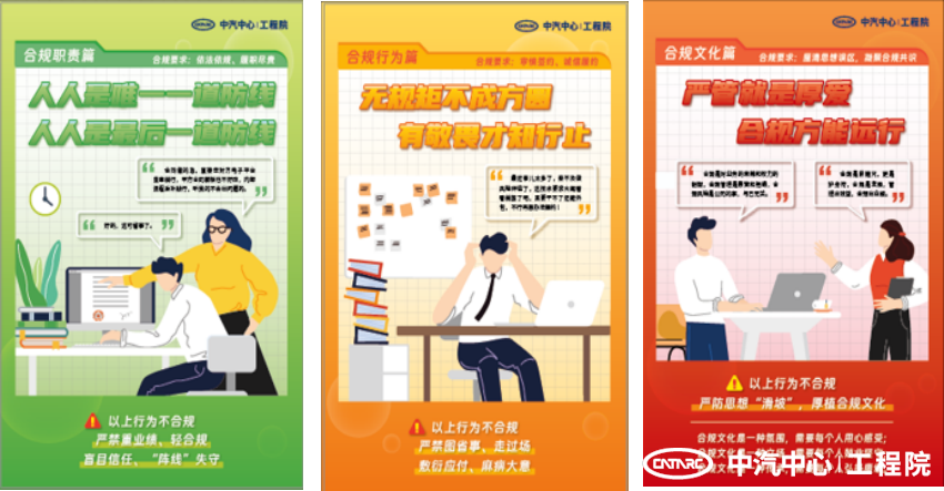 為提升工程院依法合規(guī)經(jīng)營(yíng)管理水平,營(yíng)造積極良好的合規(guī)文化氛圍,護(hù)航企業(yè)高質(zhì)量發(fā)展,在中汽中心合規(guī)文化周期間,工程院開(kāi)展主題為“合規(guī)人人有責(zé),合規(guī)從我做起”系列文化宣教活動(dòng),以形式多樣、寓教于樂(lè)的方式激發(fā)全員參與合規(guī)管理的熱情,將合規(guī)理念、合規(guī)要求、合規(guī)職責(zé)落到一線,使活動(dòng)深入、扎實(shí)、有效開(kāi)展。