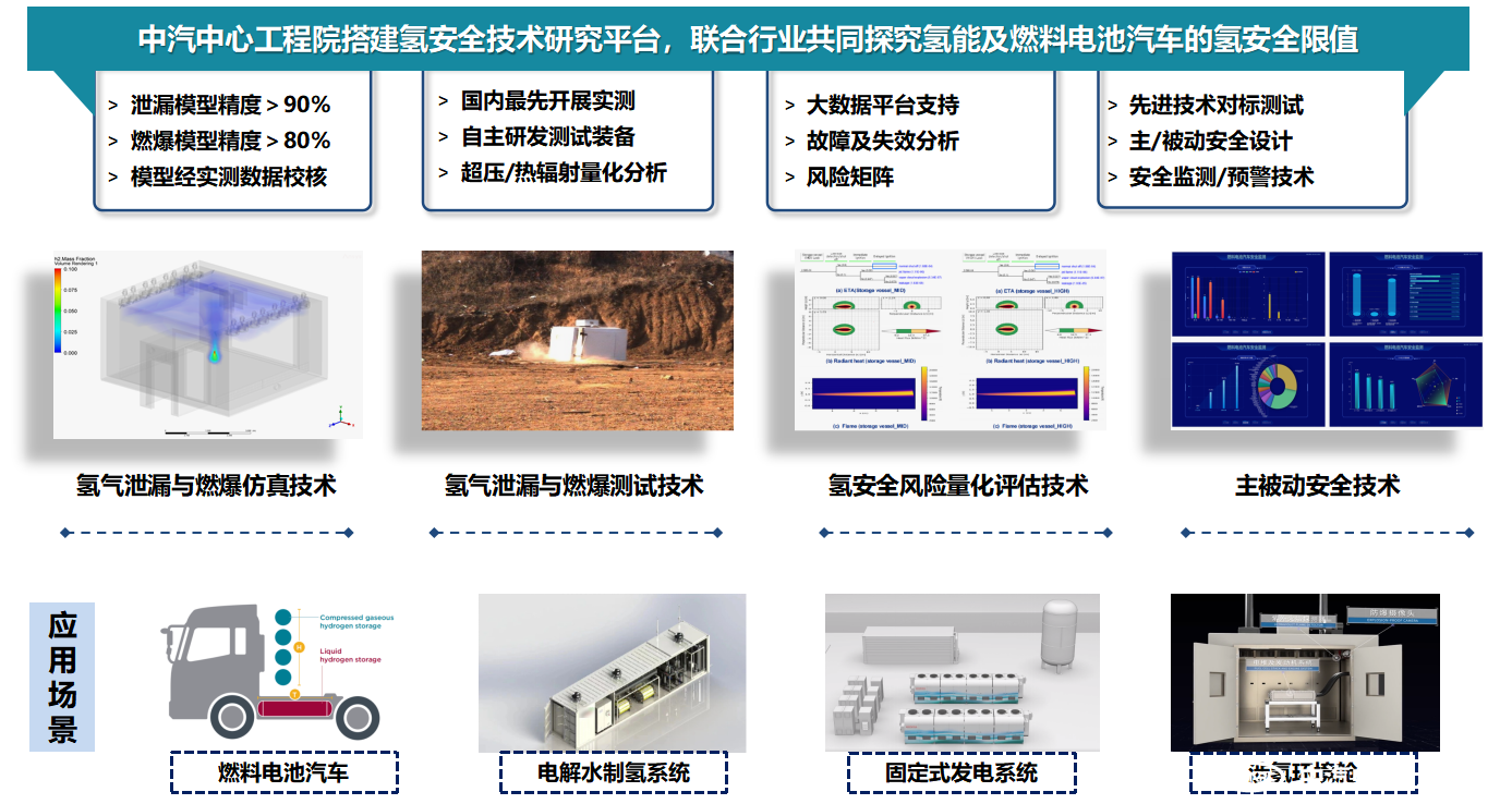 中汽中心工程院在汽車安全領(lǐng)域已有十余年技術(shù)積淀,服務(wù)于氫能產(chǎn)業(yè)應(yīng)用發(fā)展,我們致力于搭建氫安全技術(shù)研究平臺,開展對氫氣泄漏與燃爆的測試與仿真技術(shù)研究,構(gòu)建符合氫能及燃料電池汽車應(yīng)用場景的氫安全風(fēng)險量化評估體系。