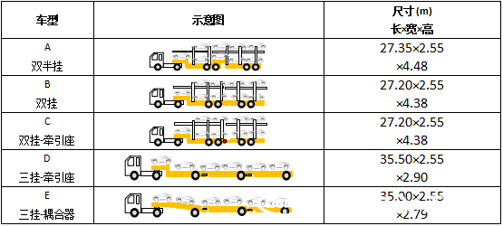 表1 汽車列車主要形式