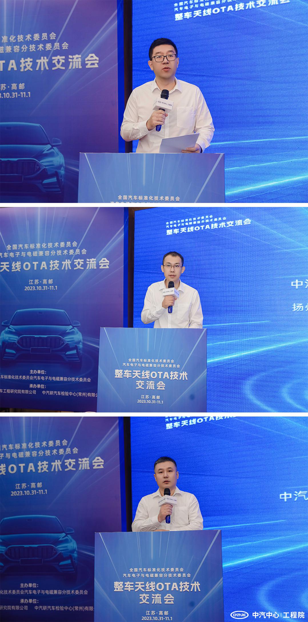 2023年10月31日至11月1日,“2023整車天線OTA技術交流會”在江蘇高郵舉辦。本次會議由全國汽車標準化技術委員會電子與電磁兼容分技術委員會主辦,中汽研揚州汽車工程研究院有限公司(簡稱揚州公司)、中汽研汽車檢驗中心(常州)有限公司(簡稱常州檢驗中心)承辦。