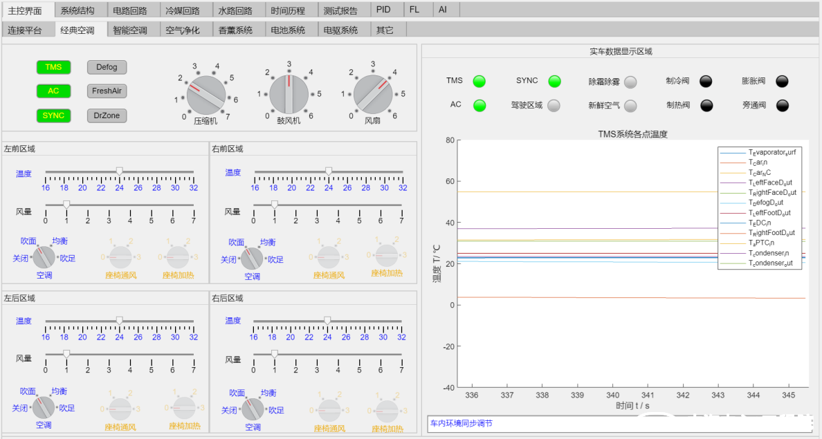 基于以上工作構建出適合整車的熱系統,必要時進行操作運行界面虛擬開發和測試監控界面開發,如下圖示: