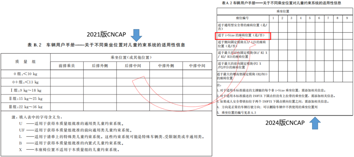 2024版C-NCAP增加了I-SIZE位置的評價,對車輛本身座椅的性能要求提升,相應(yīng)的I-SIZE兒童座椅型號及標(biāo)識評價需要相繼規(guī)劃,在 GB 14167-202X 實施日期之前,仍按C-NCAP2021 版中“ISOFIX 兒童約束系統(tǒng)適用性”執(zhí)行;在 GB14167-202X 過渡期期間(預(yù)計24個月),可由企業(yè)選擇按本條款執(zhí)行或仍按 CNCAP 2021 版中“ISOFIX 兒童約束系統(tǒng)適用性” 執(zhí)行;在 GB 14167-202X 過渡期后(預(yù)計實施日起第 25 個月),按GB 14167-202X條款執(zhí)行。