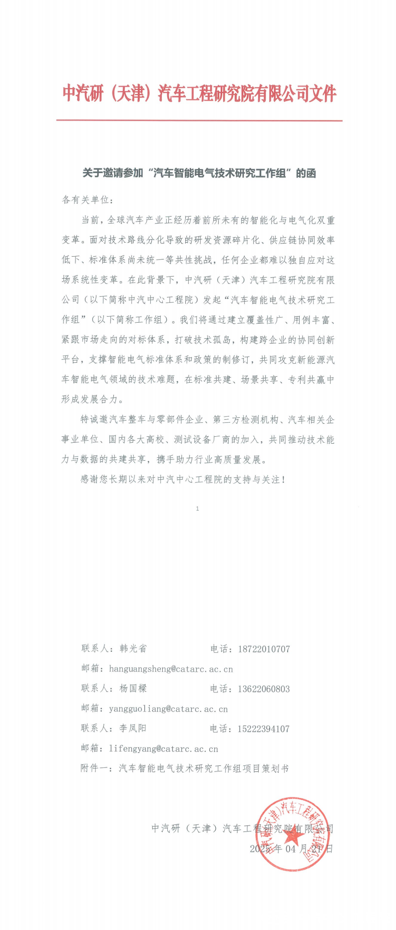 汽車智能電氣技術研究工作組邀請函