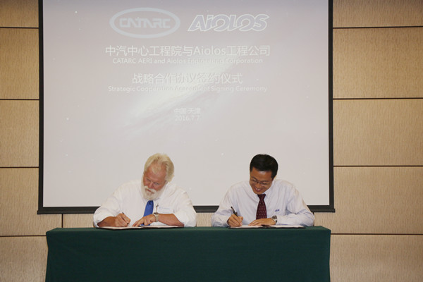2016年7月7日,中汽中心工程院與加拿大 Aiolos Engineering 公司戰(zhàn)略合作協(xié)議簽約儀式在天津成功舉行。