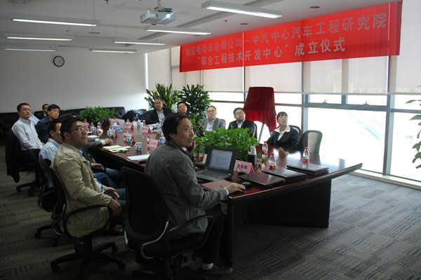 2016年4月28日,中國汽車技術研究中心汽車工程研究院(以下簡稱工程院)與知豆電動車有限公司成立“聯合工程技術開發中心”揭牌儀式在天津舉行。出席揭牌儀式的領導有知豆公司總裁鮑文光、知豆公司總裁助理張新建、知豆公司技術副總樊曉滸、知豆技術集成中心總監何志剛、天津市東麗開發區管委會主任李光華及工程院院長高繼東、副院長龔進峰、副院長馬杰、院總工程師李洪亮、院總工程師兼第五開發部主任戎輝、院副總工程師兼運營管理部主任胡濟民、院副總工程師兼第一開發部主任謝書港、院副總工程師兼第三開發部主任王新宇、院副總工程師兼第四開發部主任劉雙喜。