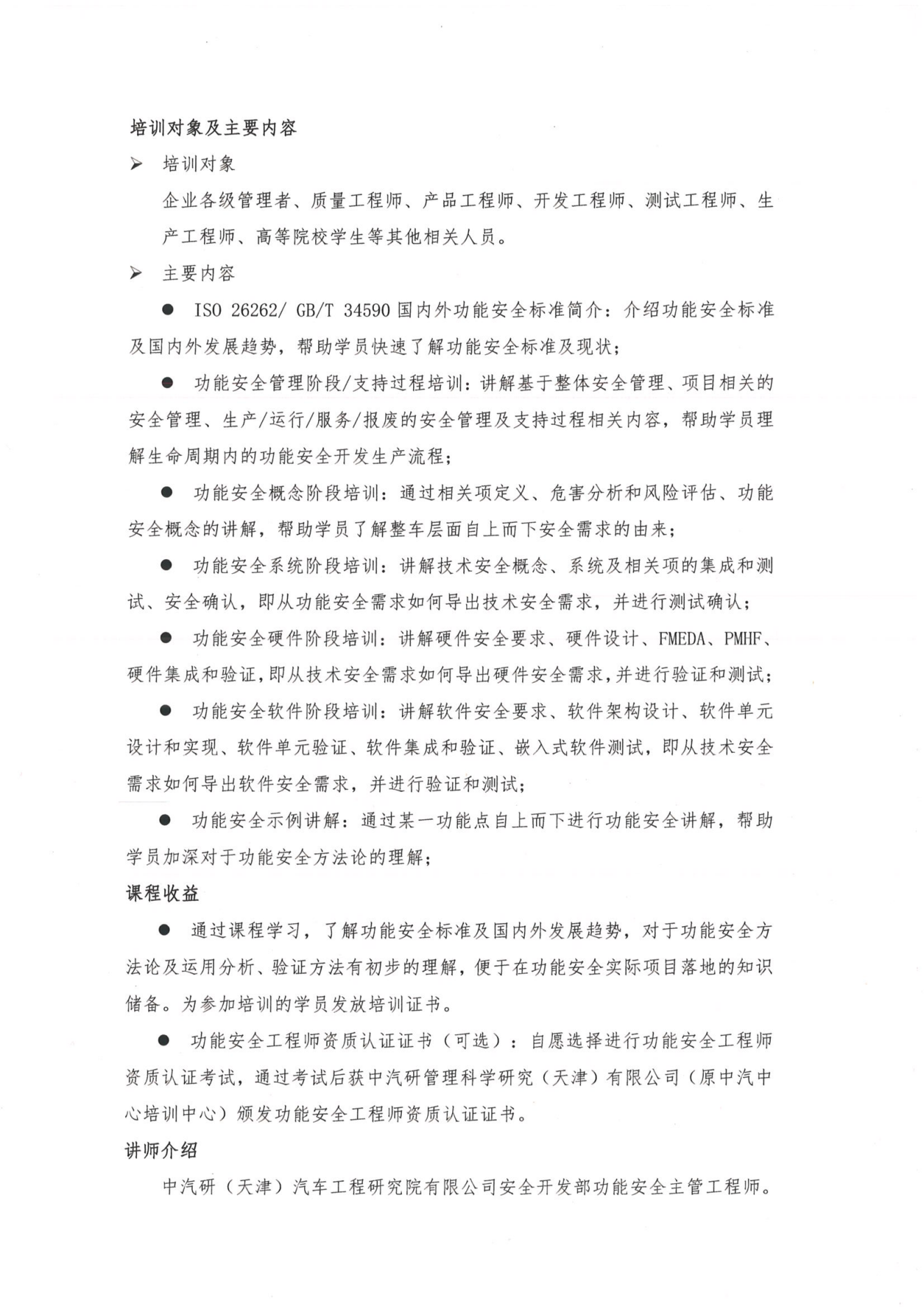 第三期道路車輛功能安全工程師公開培訓通知