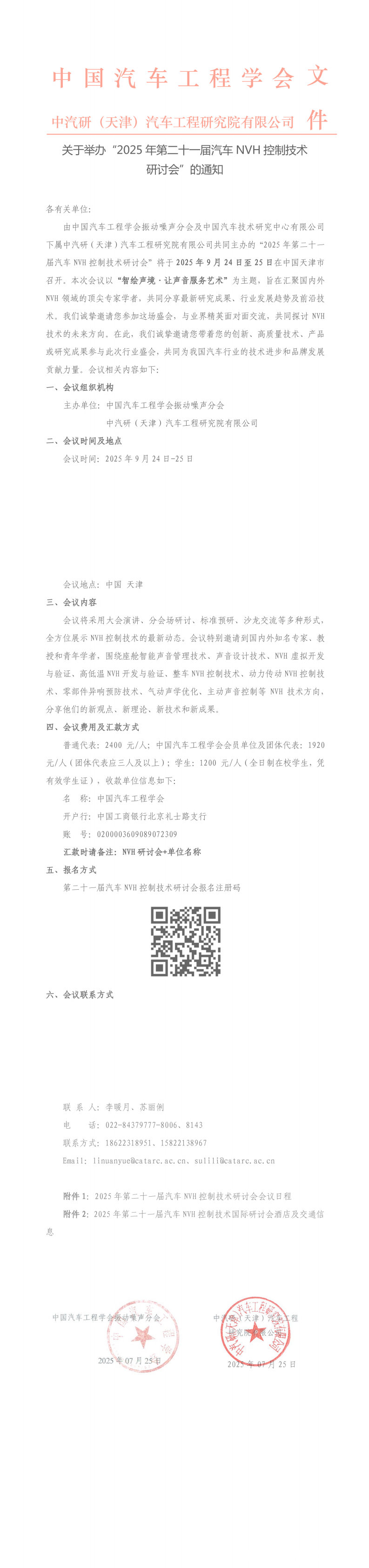 關(guān)于舉辦“2025年第二十一屆汽車NVH控制技術(shù)研討會(huì)”的正式通知