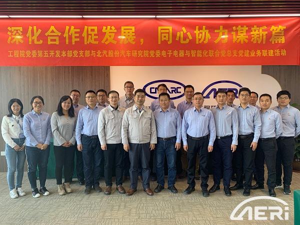 2019年11月27日,工程院黨委第五開發本部黨支部與北汽股份汽車研究院電子電器及智能化黨總支開展題為“深化合作促發展,同心協力謀新篇”的黨建業務聯建活動。北汽股份汽車研究院黨委電子電器與智能化聯合黨總支書記張永剛、第五開發本部黨支部紀檢委員唐風敏等支部成員參與此次活動。