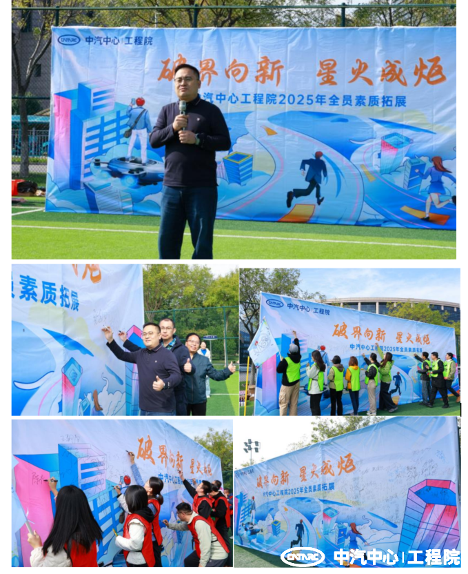 當午后陽光驅散晨寒,全體員工齊聚拓展賽場。工程院黨委書記、副總經理(主持工作)張志國作開賽動員:“今日天氣正如汽車產業破界融合之路——晨時低溫似轉型陣痛,此刻暖陽如破局曙光!只要我們心在一起,定能跨越寒冬,共赴春天!”全體員工在主KV簽名墻鄭重留名,把名字刻進藍圖,將星火聚為烈焰,共同許下與工程院共成長的堅定承諾。